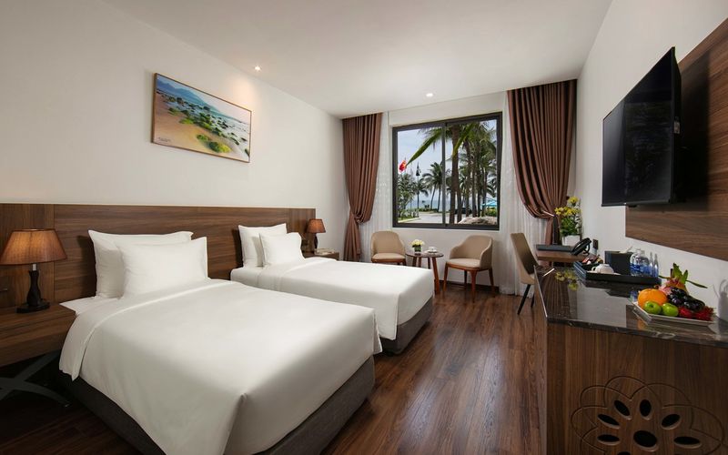 Diện tích: 5m2 Hướng view trực diện biển Phòng dành cho 02 người lớn và 02 trẻ em Phòng có 02 Giường Đơn hoặc 01 Giường Đôi lớn