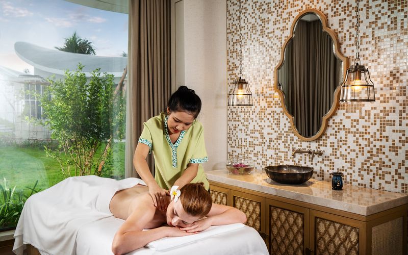 Khách có thể tận hưởng những gói liệu trình tại khu Spa yên tĩnh với đầy đủ các dịch vụ. Các dịch vụ gồm massage, chăm sóc da mặt, phòng xông hơi muối Himalaya, phòng xông hơi tinh dầu thảo dược, trải nghiệm tắm vòi sen phong cách Thụy Sĩ, bể sục Vitality, phòng thư giãn phục vụ các loại nước giải khát Spa, nước ép trái cây, trái cây tươi và trà tốt cho sức khỏe.